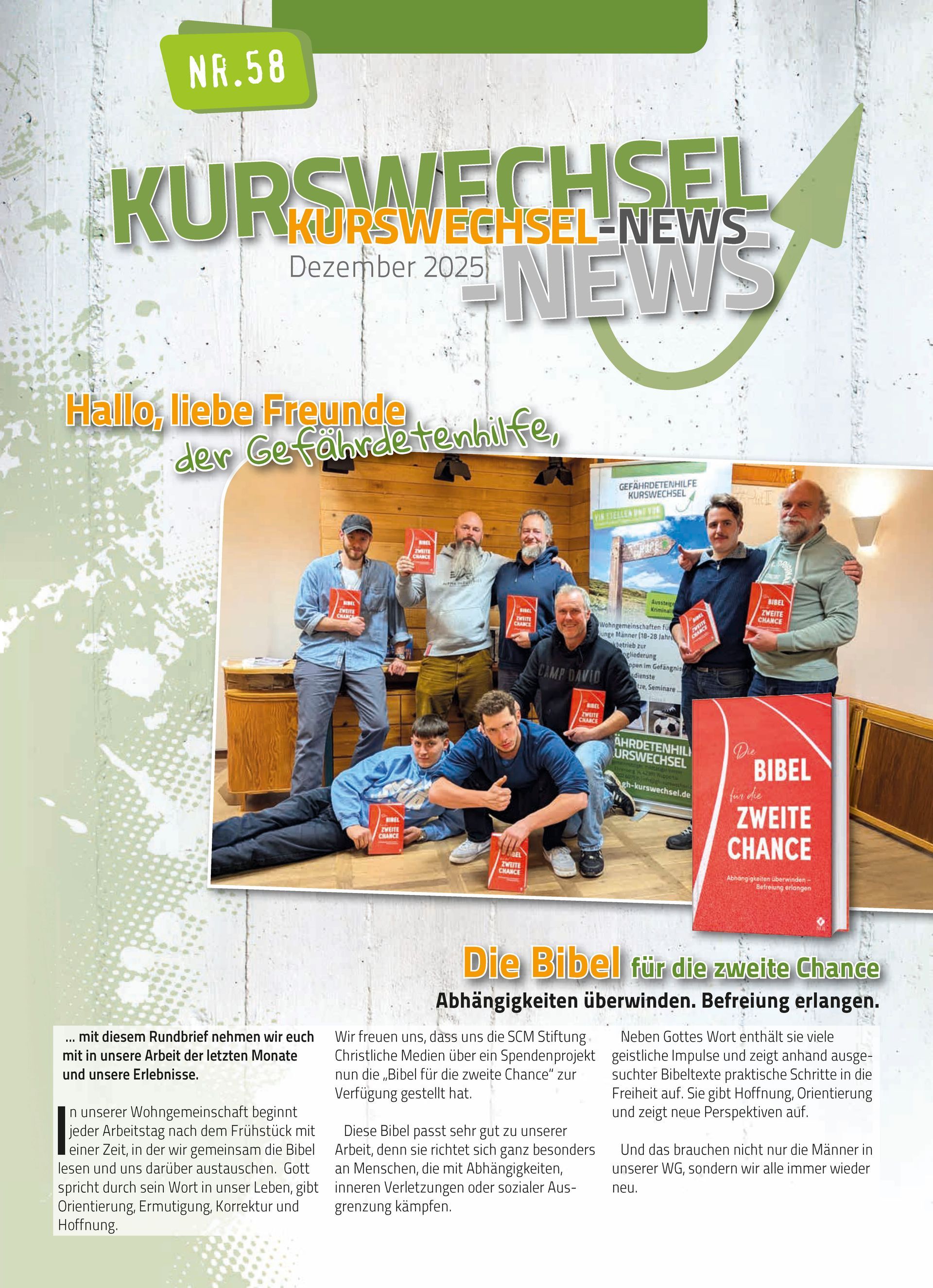 Die Not anderer Menschen, insbesondere die von drogenabhängigen und straffälligen Jugendlichen hat uns betroffen gemacht. Aus dieser persönlichen Betroffenheit heraus entstand 1992 die Gefährdetenhilfe Kurswechsel. Auf den folgenden Seiten möchten wir einen Einblick in unsere Arbeit geben.